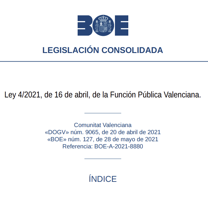 Ley 4/2021, de 16 de abril, de la Función Pública Valenciana